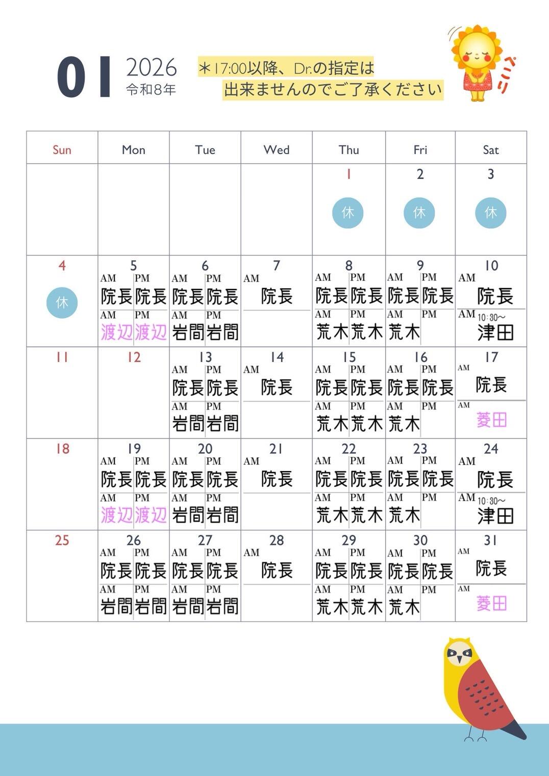 お知らせNews ホーム お知らせ 診療体制 1-2月 2026/01/05 診療体制 1-2月 一部、外来医師2-3名体制となっております。※深夜分娩は当直医となる場合があります。医師希望ございましたらスタッフにお申し付け下さい。 一覧に戻る SNS Instagram