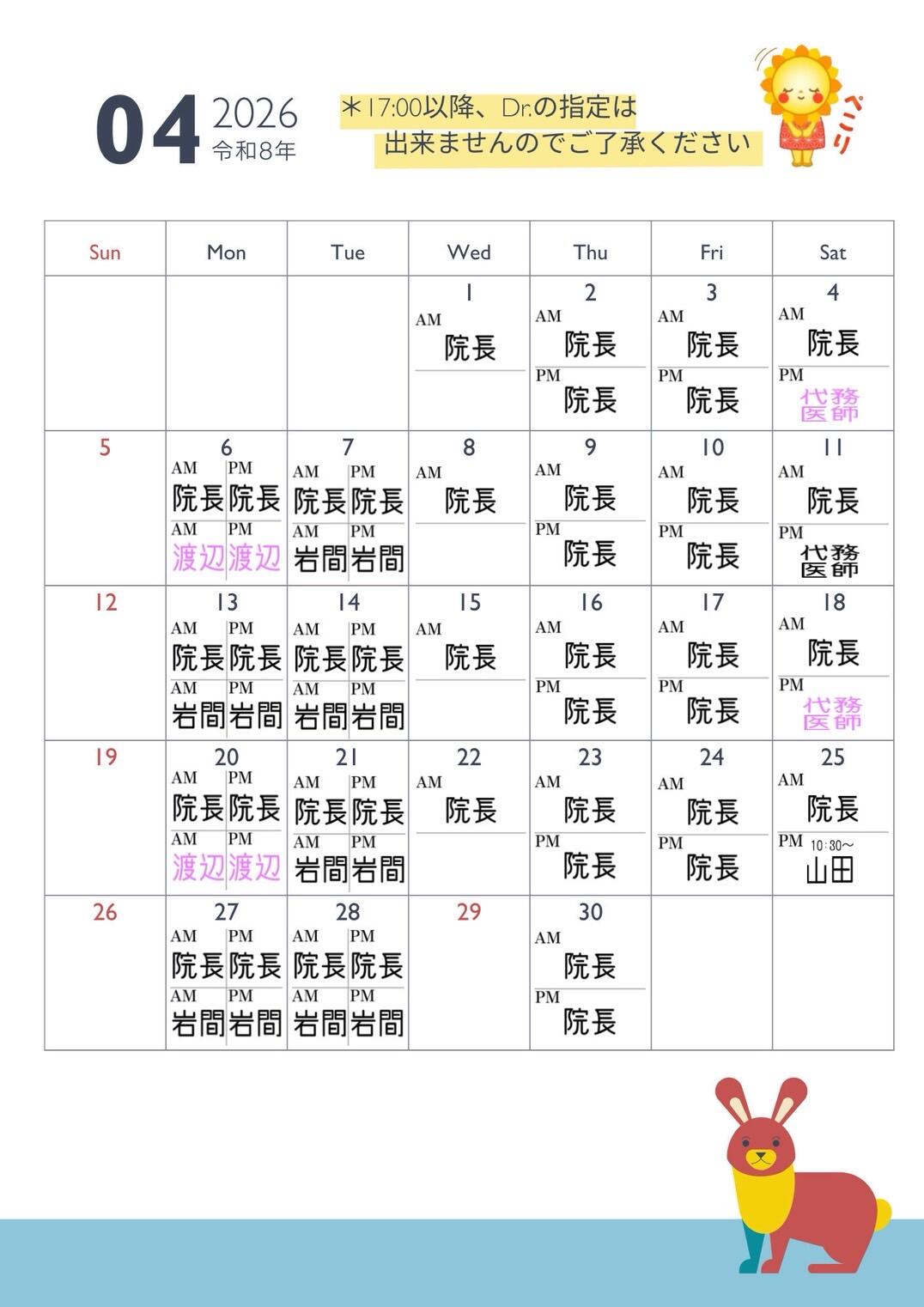 お知らせNews ホーム お知らせ 診療体制 3-4月 2026/03/08 診療体制 3-4月 一部、外来医師2-3名体制となっております。※深夜分娩は当直医となる場合があります。医師希望ございましたらスタッフにお申し付け下さい。 一覧に戻る SNS Instagram